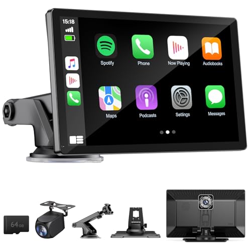 9.26" Wireless Portable Car Play Screen for Apple CarPlay & Android Auto, OTA Updates, Backup Camera, Mirror Link, 5.0 Bluetooth, Voice Control, GPS Navigation, FM